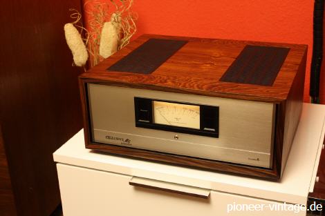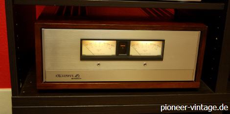 Die passende Endstufe zum C-3 Vorverstärker war die M-3. Anschlußmöglichkeiten für 3 Paar Lautsprecher, je mit separater Pegelregelung. Die wunderschönen großen VU-Meter und das imposante Woodcase prägten das Design der Exclusive Endvertärker. Mit 27,5 kg wog die Endstufe noch mehr, als die 1-2 Jahre später folgende SPEC-2 aus dem "normalem" Pioneer Programm.