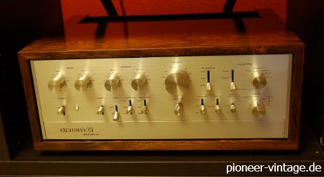 Sehr hochwertiger Vorverstärker von Pioneer´s Nobelmarke Exclusive. Die meisten EXCLUSIVE Geräte wurden nur auf dem japanischen Markt vertrieben. Einige wenige fanden auch ihren Weg nach Europa. Bei der Herstellung der Exclusive Geräte wurden nur die besten Materialien und Bauteile verwendet. Eine optische Besonderheit war auch das um 45 Grad geneigte Anschlußfeld mit Schiebedeckel.