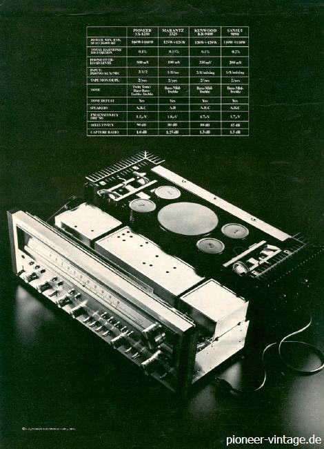 Das Intresannte ist, daß die tollen Hifikomponenten im Herstellungsland Japan gar nicht verkauft wurden. Dort stand man wohl eher auf Einzelkomponenten. Obwohl die Aera der Monstereceiver mit dem Vorgänger SX-1010 anfing, hat Pioneer mit diesem Gerät einen wahren Krieg gestartet. Dies nicht zuletzt durch agressive Vergleichswerbung in der Presse. (siehe z.B. Werbe-Scan unten) Bis 1980 haben sich die japanischen Herrsteller immer wieder in der Ausgangsleistung überholt, bis dann wieder runtergeschraubt wurde.
