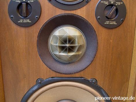 Lieblingsboxen meiner Frau, da stehen 2 Lüster drauf. Klanglich nicht berauschend, aber immer noch besser als Grundig Audiorama Boxen. Bei den PIONEER CS-06 schallt der Tieftöner nach unten und jeweils 3 Hochtöner und Mitteltöner in alle Richtungen.